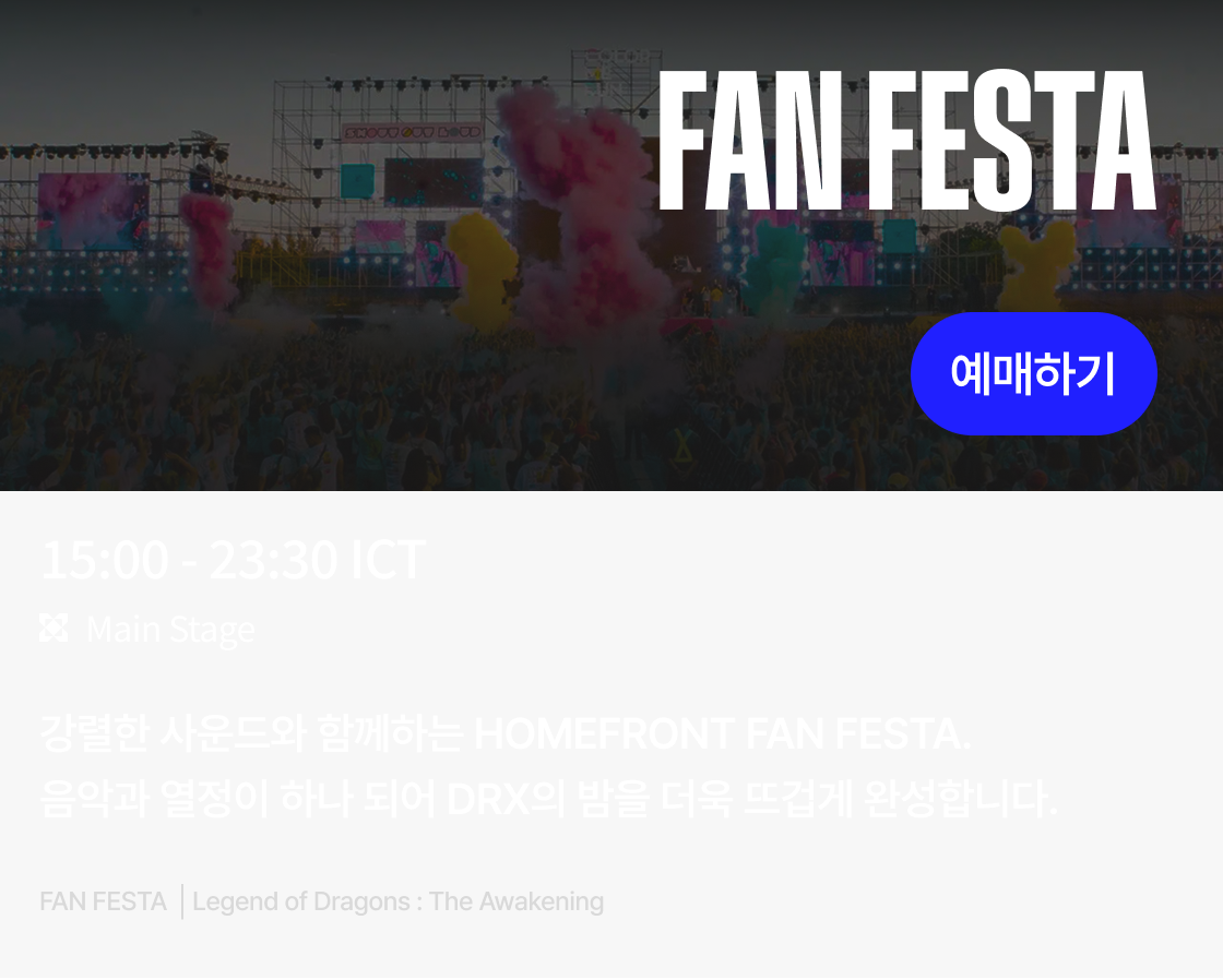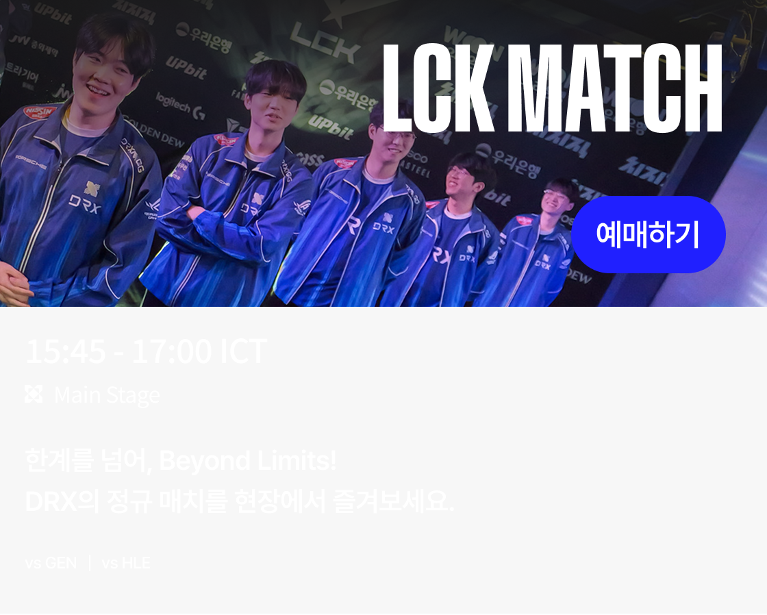 이제, HOMEFRONT를 직접 경험할 시간입니다. 하노이에서 펼쳐질 키움 DRX의 역사적인 순간을 현장에서 함께하세요.